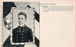 ESPAGNE. ALPHONSE XIII, NE LE 17 MAI 1886; PROCLAME ROI LE 17 MAI 1886, DOUS LA REGENCE DE SA MERE MARIE CHRISTINE D' AUTRICHE, D'ISABELLE II ET DE FRANCOIS S'ASSISE, SES GRANDS-PARENTS