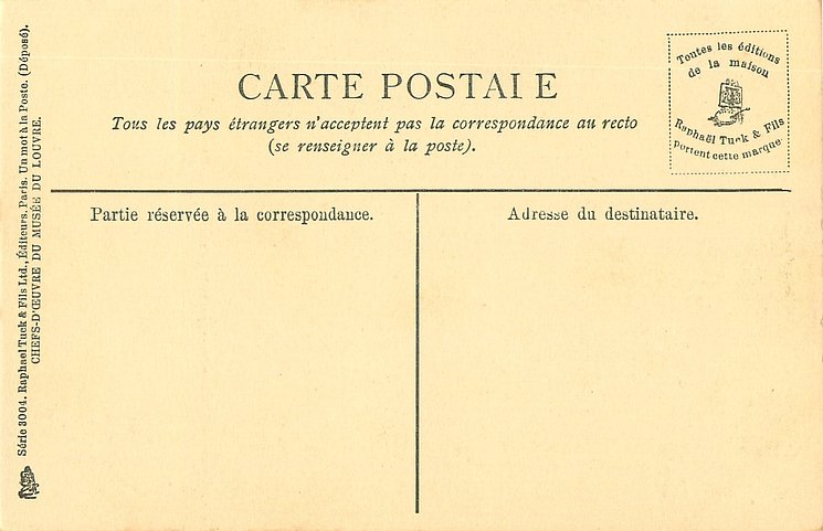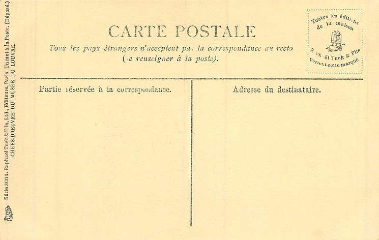 brown/purple,UN MOT A LA POSTE, (DEPOSE), same image & number, German/International back 3004 COLLECTION ALTER MEISTER AUS DEN FRANZOSISCHEN GALERIEN with inscription, front title & artist in French