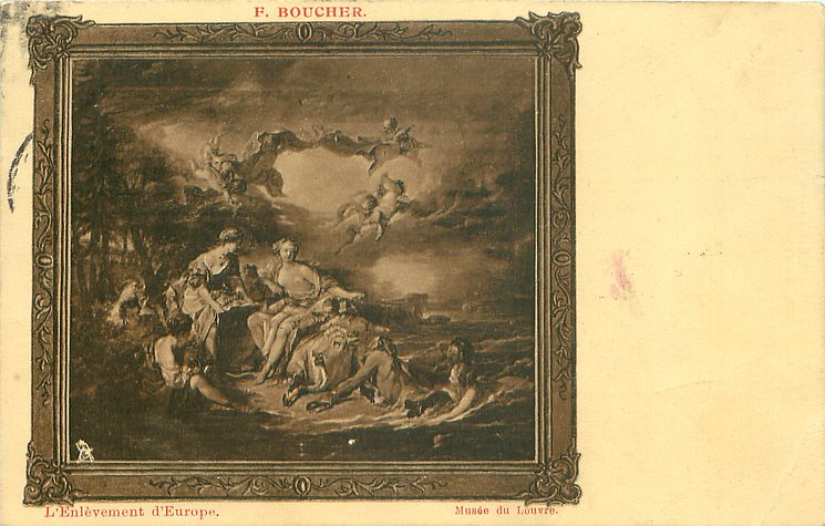 UN MOT A LA POSTE, (DEPOSE), same image & number, German/International back 3001, COLLECTION ALTER MEISTER AUS DEN FRANZOSISCHEN GALERIEN with inscription, front title & artist in French