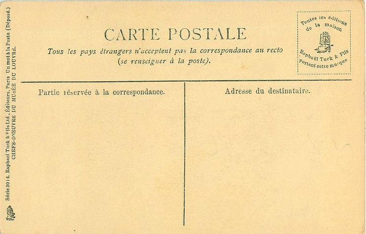brown/purple, UN MOT A LA POSTE, (DEPOSE), same image & number, German/International back 3014 COLLECTION ALTER MEISTER AUS DEN FRANZOSISCHEN GALERIEN with inscription,front title & artist i
