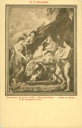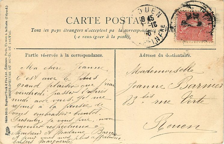 brown/purple, UN MOT A LA POSTE, (DEPOSE), same image & number, German/International back 3015 COLLECTION ALTER MEISTER AUS DEN FRANZOSISCHEN GALERIEN with inscription,front title & artist