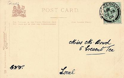 shades of grey/black, PHOTO BAVARIA, 2 backs, come opt. in red ARMS OF CHELTENHAM, listed in RAPHAEL TUCK & SONS' LD. CHRISTMAS & NEW YEAR 1904/1905 catalogue, same images and set 1673 OILETTE