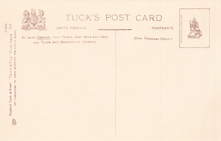 grey/black, TOWN & CITY, PHOTOTYPED IN HOLLAND (in stamp box), set & card titles in white lower margin, comes opt. in red or blue ARMS OF CHESTER & motto