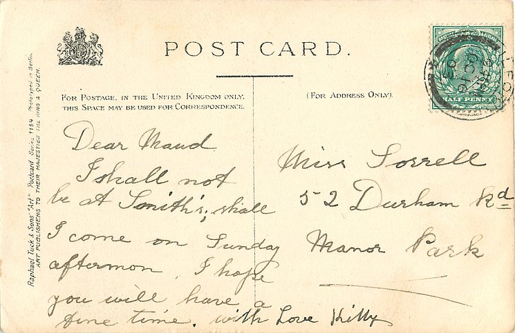ART, shades of grey/black, come hand-coloured, PHOTOTYPED IN BERLIN, listed in 1904 POSTCARD Catalogue