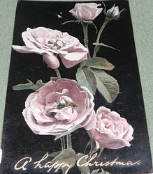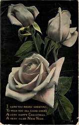four pink roses, two lower widely open, two partly open buds above A LITTLE TOKEN JUST TO SAY... OF MERRY CHRISTMAS