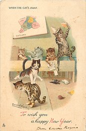 DESIGNED IN ENGLAND, CHROMOGRAPHED IN GERMANY, same images ART, without greetings see 1262, in shades of grey/black 130, see Booth and Lund