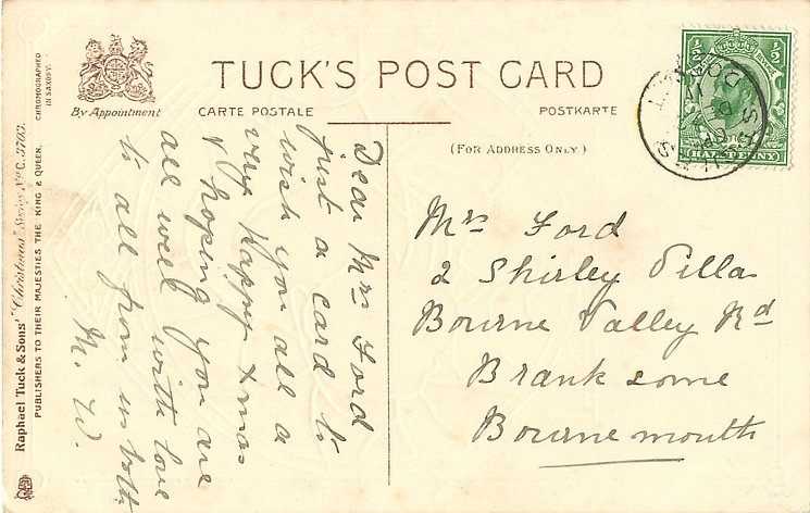 silver embossed, CHROMOGRAPHED IN SAXONY, gilt charm (bells) and string applique