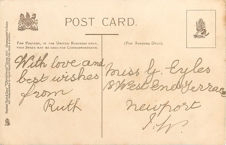 ART, CHROMOGRAPHED IN SAXONY, listed in RAPHAEL TUCK & SONS' LD. CHRISTMAS & NEW YEAR 1904/1905 catalogue