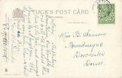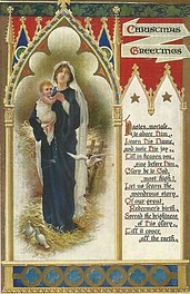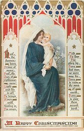 verse:- HAIL, THE HEAVEN- BORN PRINCE OF PEACE, HAIL, THE SUN OF RIGHTEOUS- NESS! LIGHT AND LIFE TO ALL HE BRINGS//SECOND BIRTH. Same image comes in shades of grey C 7123 & as Tuck Ephemera greeting card, artist
