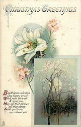 CHRISTMAS GREETINGS lilies, blossom at night in inset