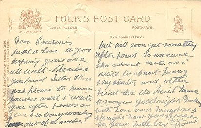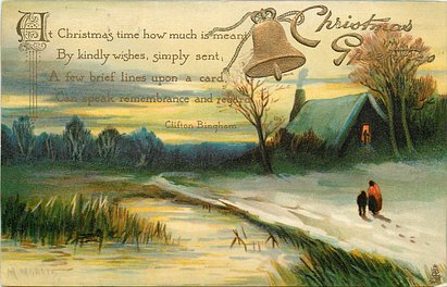 verse:- AT CHRISTMAS TIME HOW MUCH IS MEANT BY KINDLY WISHES, SIMPLY SENT; A FEW BRIEF LINES UPON A CARD, CAN SPEAK REMEMBRANCE AND REGARD. quote CLIFTON BINGHAM