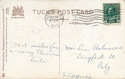 same basic image comes as Tuck Ephemera greeting card, artist