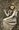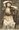 pretty woman sits on chair facing left, holds a broom with right hand, left hand rests on her knee