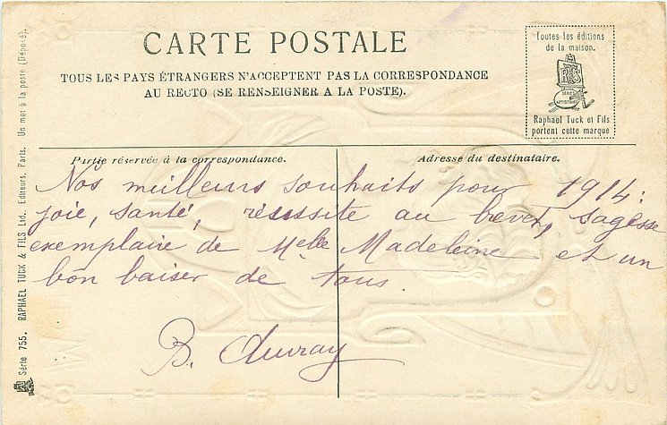 UN MOT A LA POSTE, (DEPOSE), embossed silver inset, classic beauty, come with cream or pale grey background