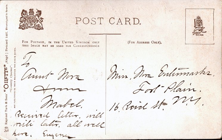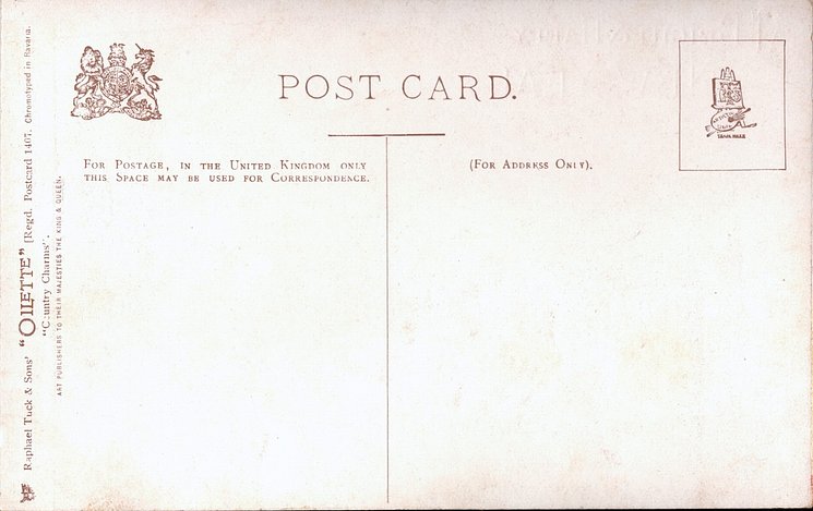 OILETTE, 2 backs, CHROMOTYPED or PROCESSED IN BAVARIA, come beaded, listed in 1904 & 1908/1909 & 1911/1912 & 1913/1914 & 1930 Postcard Catalogues, listed in TUCK'S TRAVELOGUES (USA?1905)