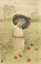 photographic, hand-coloured, UN MOT A LA POSTE, (DEPOSE), come opt. in gilt BONNE FETE