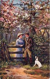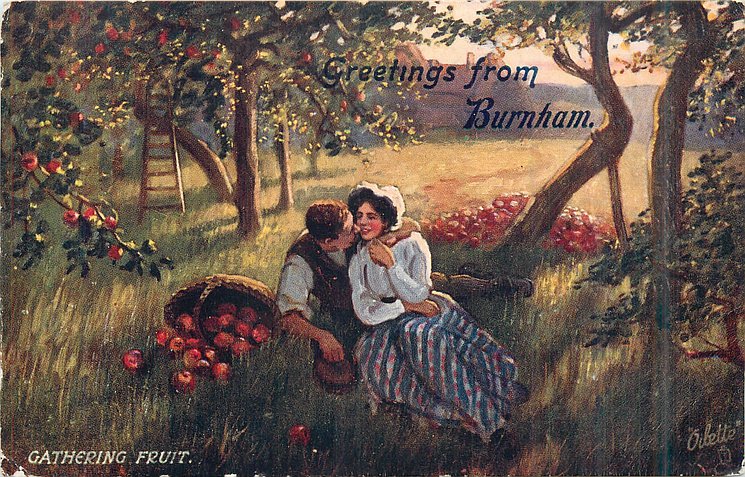comes opt. in black AT SLIGO, BAMPTON DEVON IS AN IDEAL PLACE FOR TWO or in blue GREETINGS FROM BURNHAM