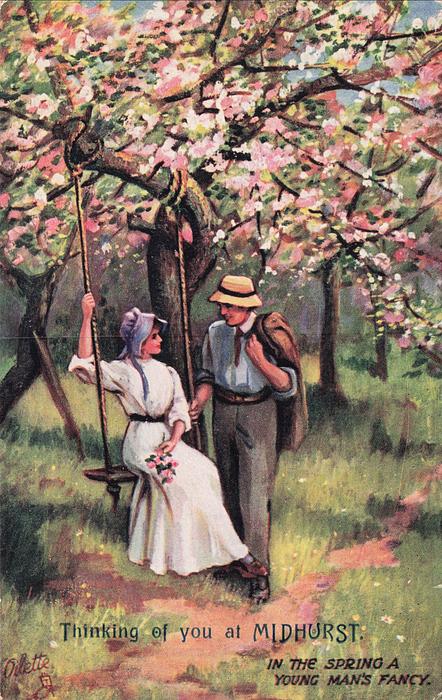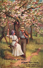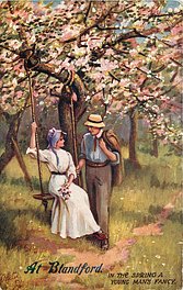 comes opt. in black BOW BRICKHILL AN IDEAL PLACE FOR TWO, in black TRURO IS AN IDEAL PLACE FOR TWO, in blue AT BLANDFORD, in blue THINKING OF YOU AT OKEHAMPTON, in black THINKING OF YOU AT MIDHURST.