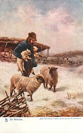 title on English backed card A CAREFUL SHEPHERD AFTER THE BLACK & WHITE DRAWING BY W. BOTHAMS
