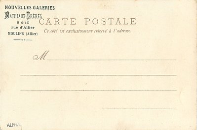 u/b, UN MOT A LA POSTE (DEPOSE), come with back opt. NOUVELLES GALERIES MATHIAUX FRERES 8 & 10 RUE d'ALLIER MOULINS (ALLIER)