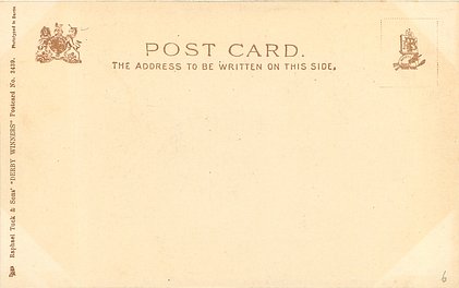 u/b, sepia, PHOTOTYPED IN BERLIN, listed in 1904 POSTCARD Catalogue