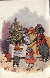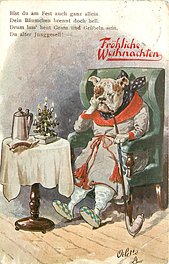comes opt. in red FROLICHE WEIHNACHTEN & verse in black BIST DU AM FEST AUCH GANZ ALLEIN//DU ALTER JUNGGESELL!
