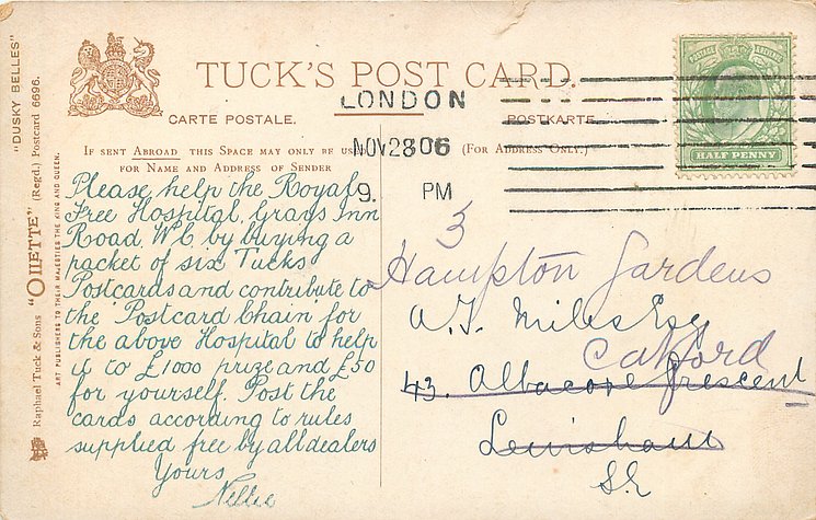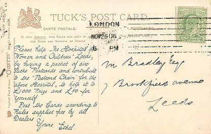 comes with POSTCARD CHAIN hospital fundraiser ad. on back