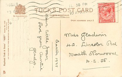 verse:- A LITTLE FRIEND TO YOU I SEND SWEET AS A SPRING-TIDE MORNING TO WISH YOU ALL THE JOY THAT COMES NEW-BORN EACH EASTER MORNING.