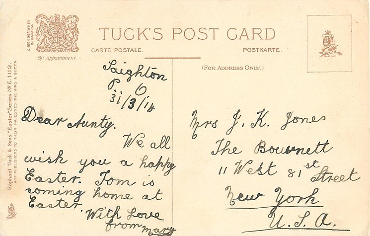 verse:- MAY THIS EASTER-TIDE TO YOU BRING PEACE AND LOVE AND GLADNESS TRUE.