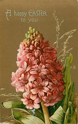 A HAPPY EASTER TO YOU pink hyacinth, stem centre/right at base