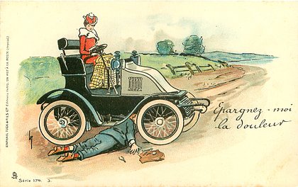 motorist has wrecked vegetable & fruit cart cart, same image, English back 622 SO SORRY & 1790 A FRIENDLY EXAMINATION