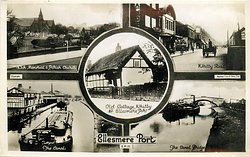 5 insets WAR MEMORIAL & PARISH CHURCH/WHITBY ROAD/OLD COTTAGE, WHITBY NR. ELLESMERE PORT/THE CANAL/THE CANAL BRIDGE