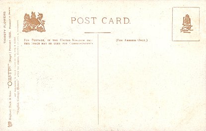 OILETTE, 3 backs, PROCESSED IN BAVARIA (in stamp box or not)listed in 1908/1909 & 1911/1912 & 1913/1914 Postcard Catalogues