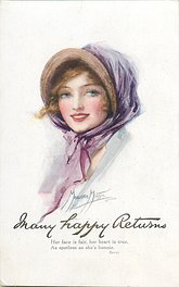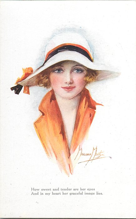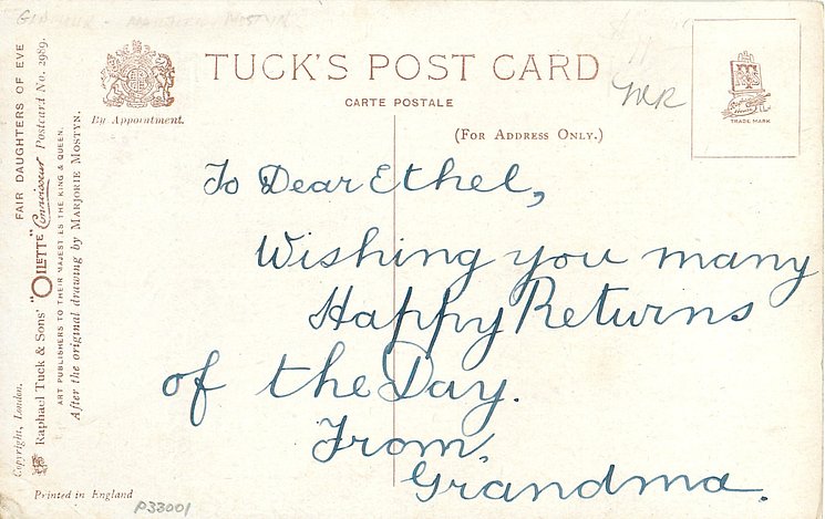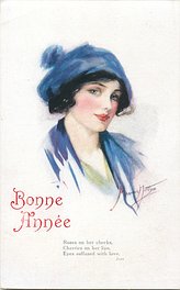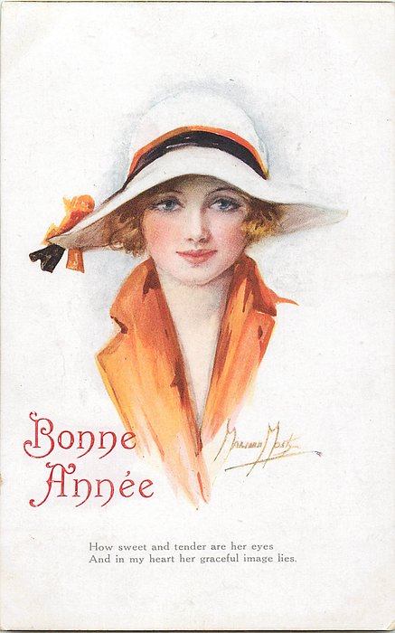 verse:- HOW SWEET AND TENDER ARE HER EYES AND IN MY HEART HER GRACEFUL IMAGES LIES., come opt. in gilt A HAPPY BIRTHDAY, or red BONNE ANNEE