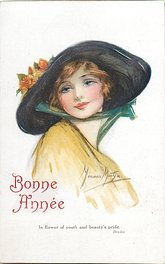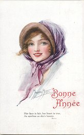 verse:- IN FLOWER OF YOUTH AND BEAUTY'S PRIDE. quote DRYDEN, come opt. in red BONNE ANNEE