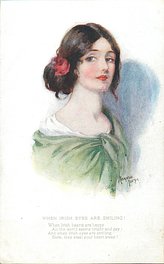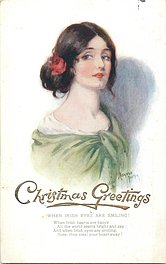 verse:- WHEN IRISH EYES ARE SMILING! WHEN IRISH HEARTS ARE HAPPY ALL THE WORLD SEEMS BRIGHT AND GAY//HEART AWAY!, come opt. in gilt CHRISTMAS GREETINGS