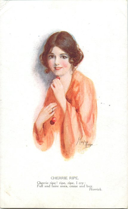 verse:- CHERRIE RIPE. CHERRIE RIPE! RIPE, RIPE, I CRY: FULL AND FAIRE ONES, COME AND BUY. quote HERRICK
