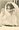 woman wearing white hat and dress, lace jacket overlay, holds flowers, long braid/curl.hangs to her right, she faces left, looks front