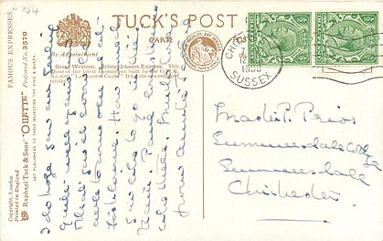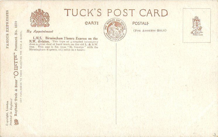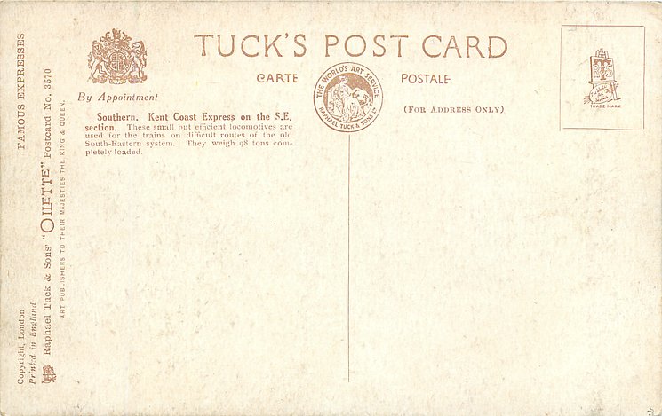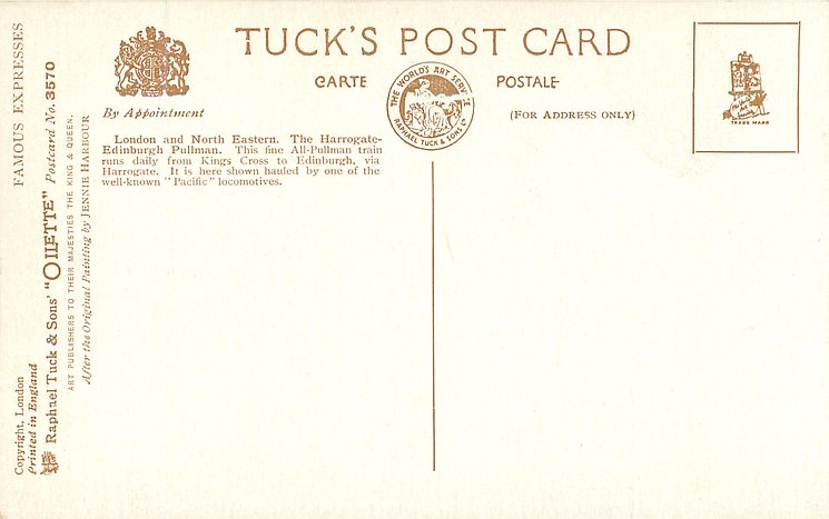 OILETTE, PRINTED IN ENGLAND, 2 backs, comes with error on back of some cards that attribute to JENNIE HARBOUR, COPYRIGHT LONDON, listed in 1930 Postcard Catalogue