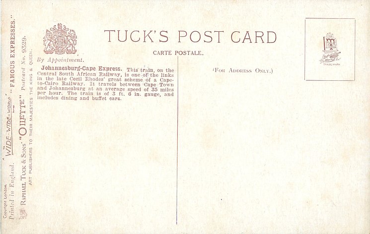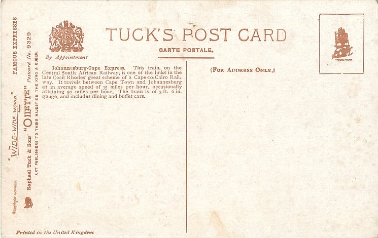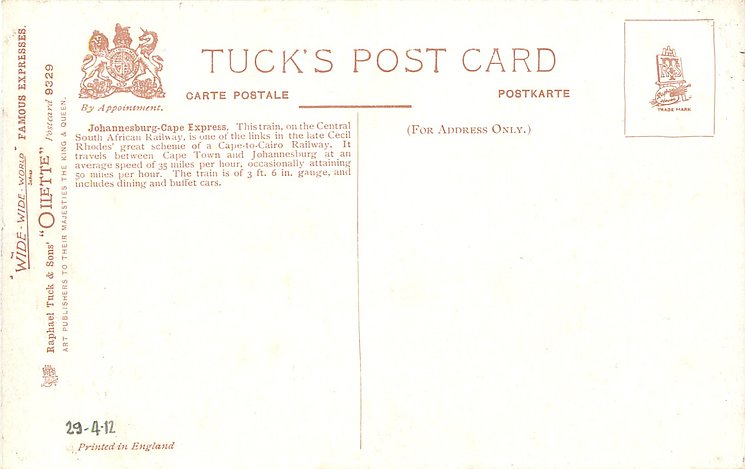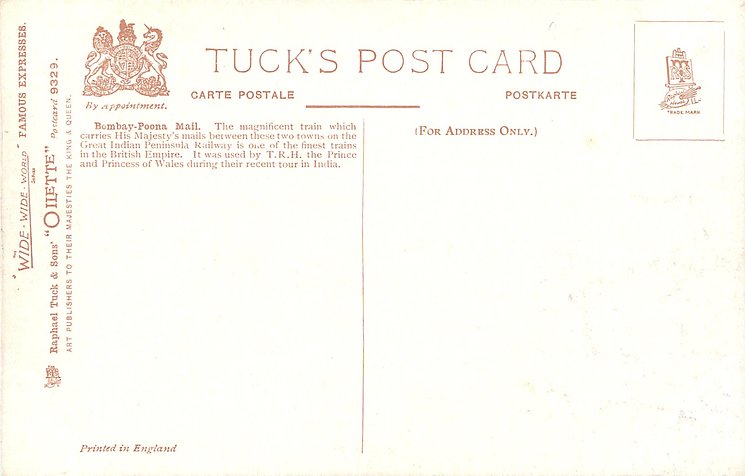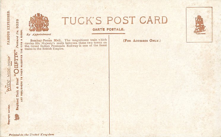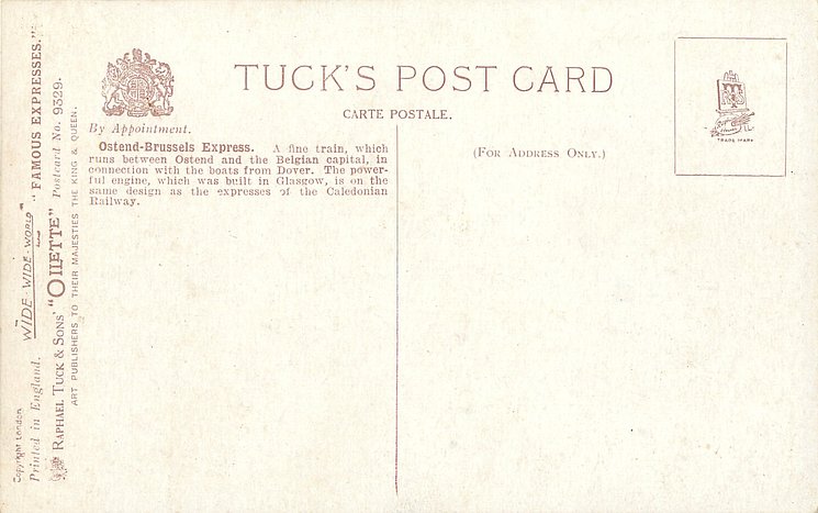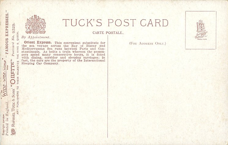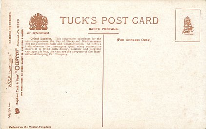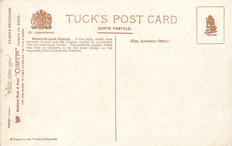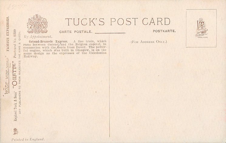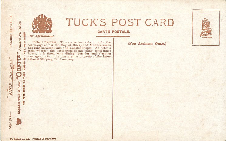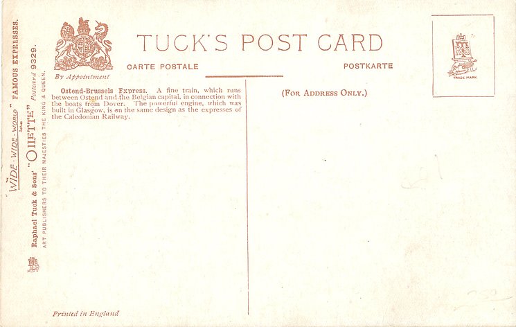 OILETTE, WIDE-WIDE-WORLD, PRINTED IN ENGLAND or PRINTED IN UNITED KINGDOM with or w/o COPYRIGHT LONDON, listed in 1908/1909(USA) & 1911/1912 & 1913/1914 & 1926/1927 Postcard Catalogues