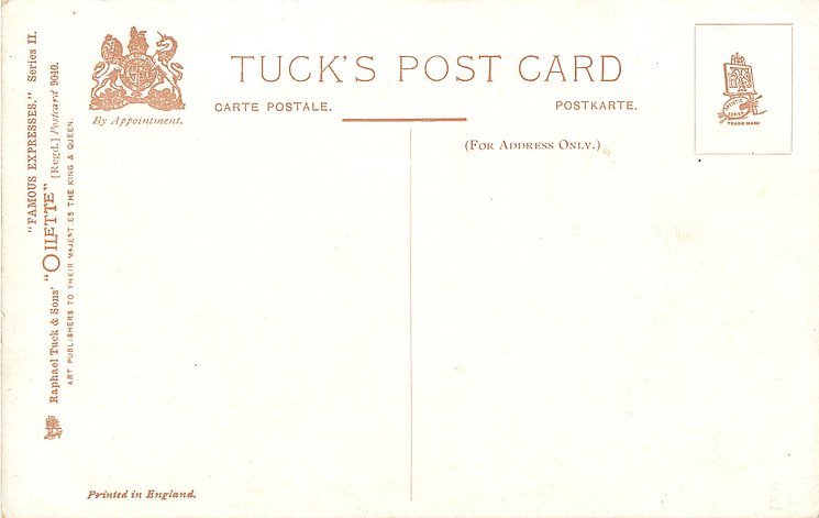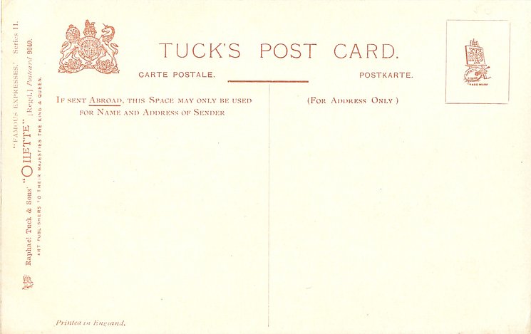 OILETTE, PRINTED IN ENGLAND, listed in 1908/1909(USA) postcard catalogue
