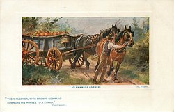 AN AWKWARD CORNER 'THE WAGGONER, WITH PROMPT COMMAND SUMMONS HIS HORSES TO A STAND