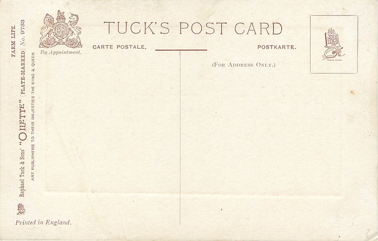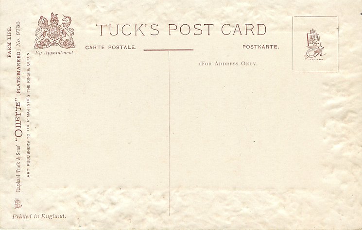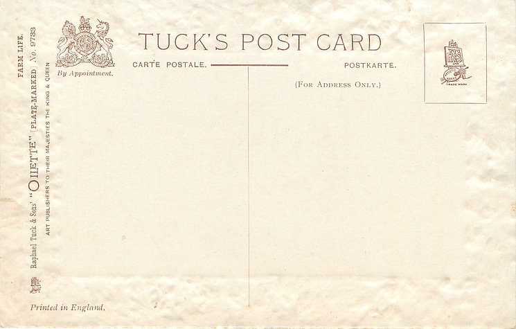 OILETTE, PLATE-MARKED, PRINTED IN ENGLAND, listed in 1908/1909 & 1911/1912 Postcard Catalogue