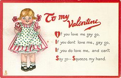 TO MY VALENTINE IF YOU LOVE ME SAY SO, IF YOU DON'T LOVE ME, SAY SO, IF YOU DO LOVE ME, AND CAN'T SAY SO--SQUEEZE MY HAND