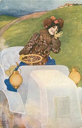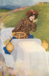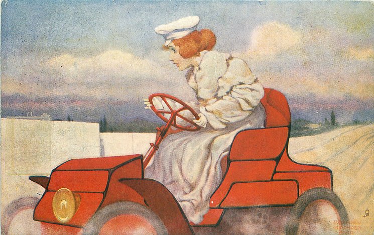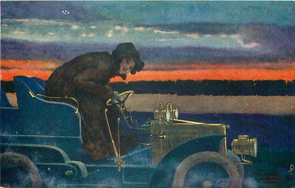 same image English back OILETTE CONNOISSEUR 2709 FLASHING MOTORISTS Dell'Aquila E.4a-4, also used for Greeting card A GOOD PACE THROUGH A MERRY SEASON