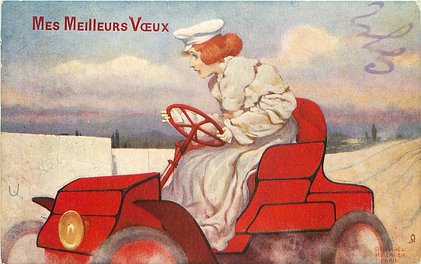 same image English back OILETTE CONNOISSEUR 2709 FLASHING MOTORISTS Dell'Aquila E.4a-1, comes with MES MEILLEURS VOEUX opt. in red