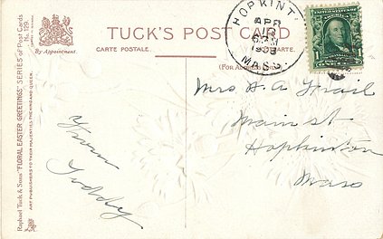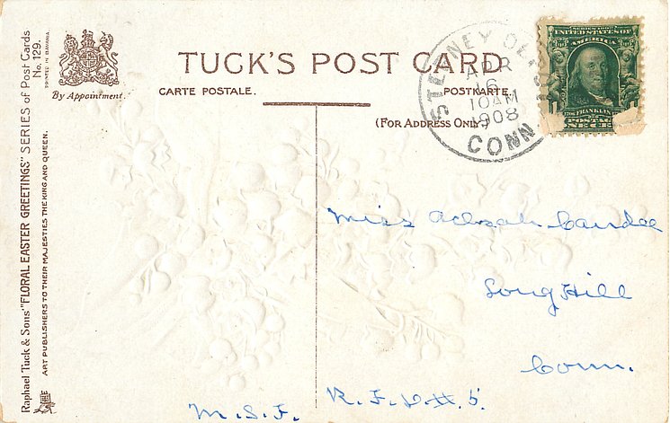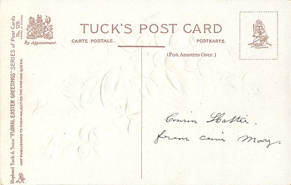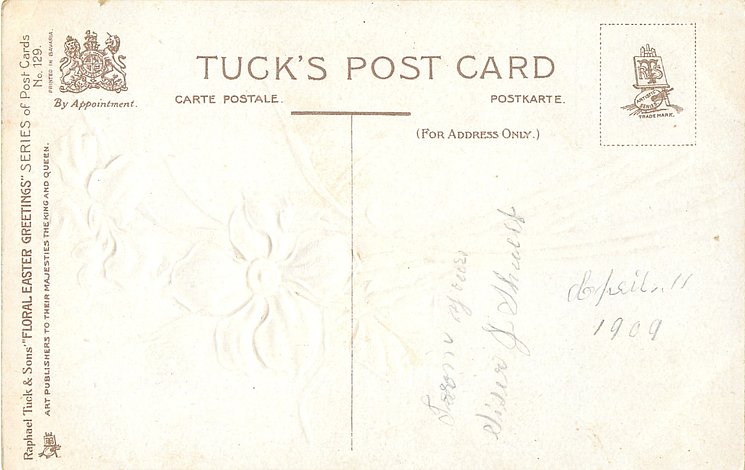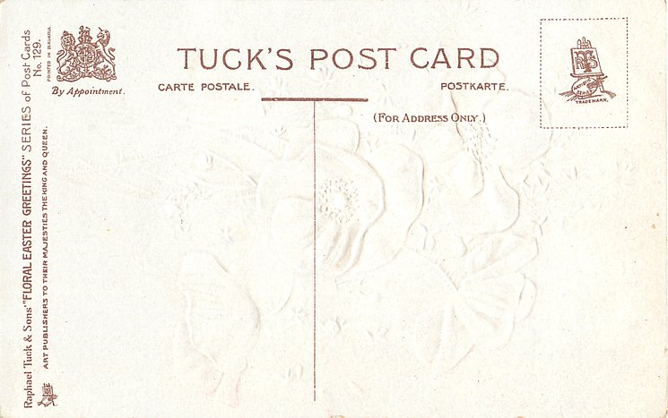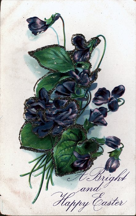 embossed, PRINTED IN BAVARIA, same images as 120 but with Easter greetings added, come glittered
