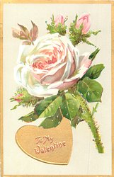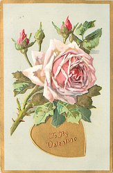 TO MY VALENTINE in gilt heart, pink rose, stem to right, three buds