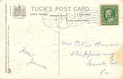 gilt embossed, PRINTED IN SAXONY, come glittered, a few identical designs occur with different wording-listed separately, many of these numbered cards also come unnumbered