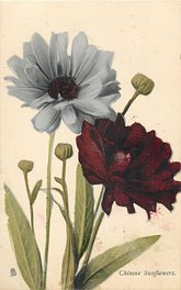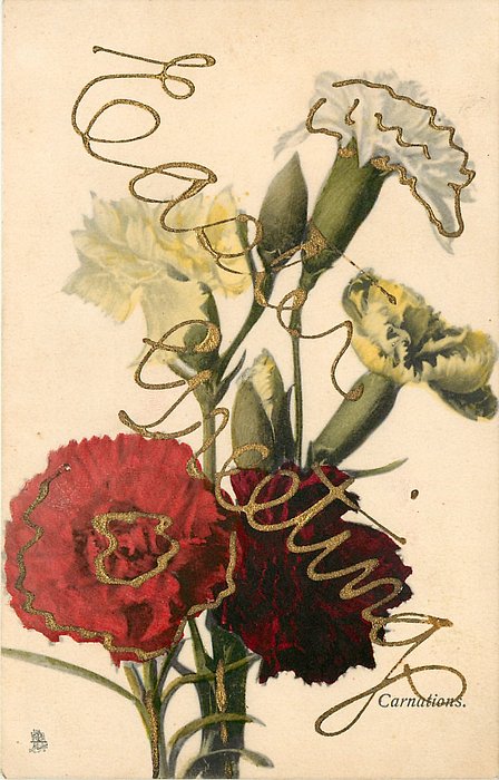 comes opt. in green/black A HAPPY BIRTHDAY, comes with gilt card edges the flowers are spelled fuchsias